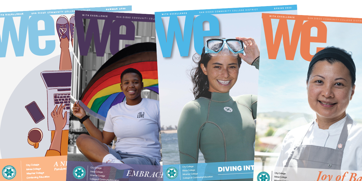WE - With Excellence magazine is published three times a year for employees and the community. The publication features major District news, special events, and showcases the activities, achievements, and challenges of faculty and staff as they carry out the District's mission to provide accessible, high-quality learning experiences to meet the educational needs of the San Diego community.